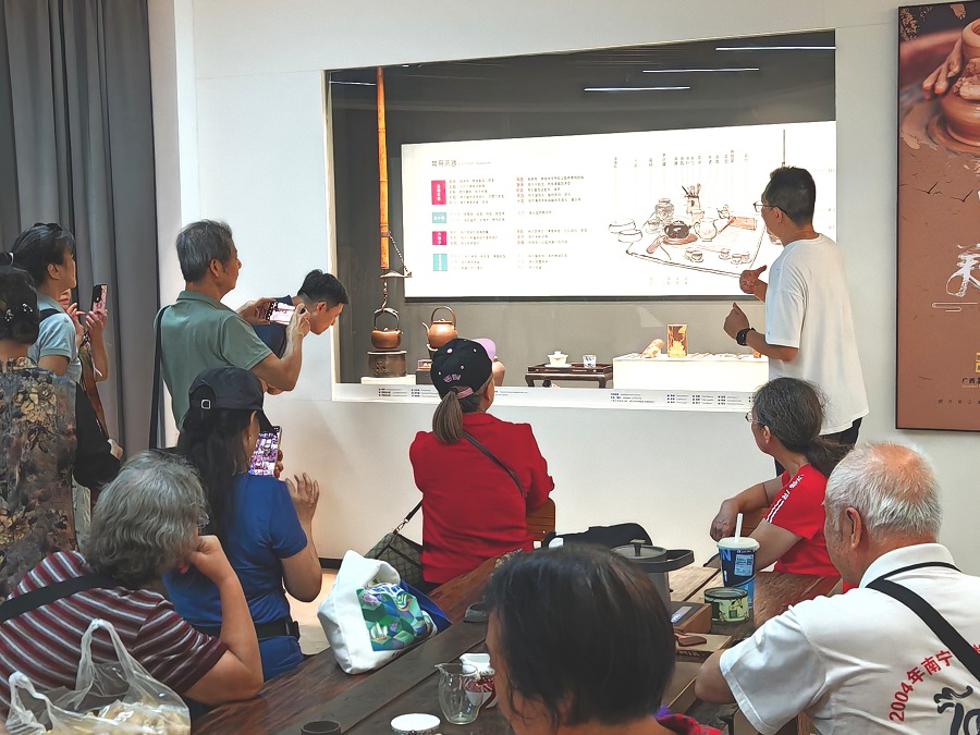 活动伊始,老同志们集体合影留念,精神矍铄、笑容洋溢。在广西职业技术学院茶器博物馆,大家循着千年陶脉,近距离领略中国四大名陶历史风韵,了解广西钦州坭兴陶“窑变”绝技及其在“一带一路”中的文化价值,深刻感悟八桂工匠精神与时代担当。