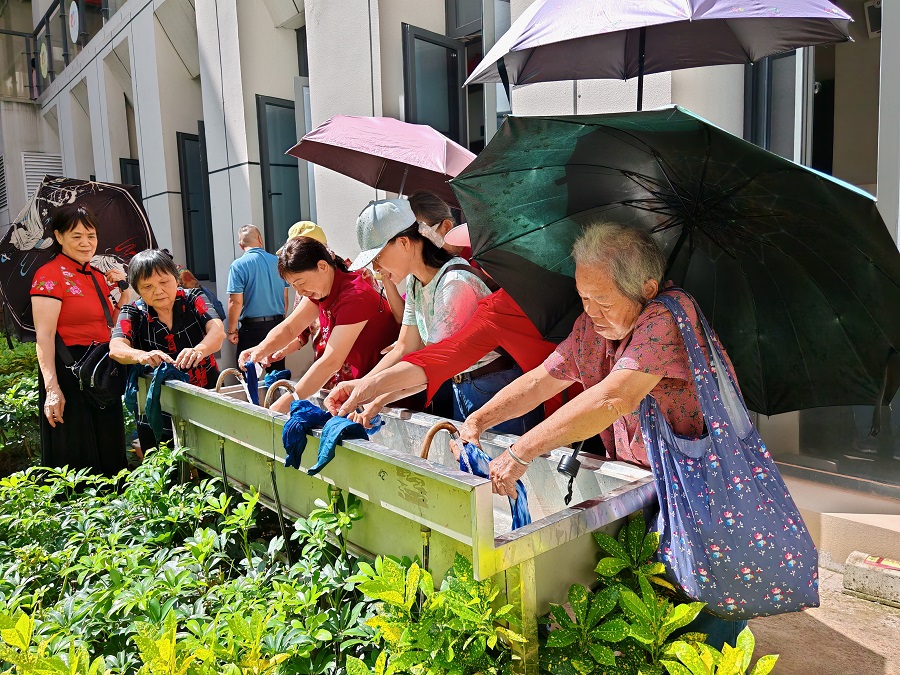 素布在巧手中变幻出蓝白相间的壮锦图案,现场欢声笑语不断,文化气息浓郁。老同志们纷纷表示,亲手参与扎染制作,不仅感受到壮族非遗的独特魅力,更在互动交流中重温了集体温暖,感受到组织对退休职工的深切关怀。
