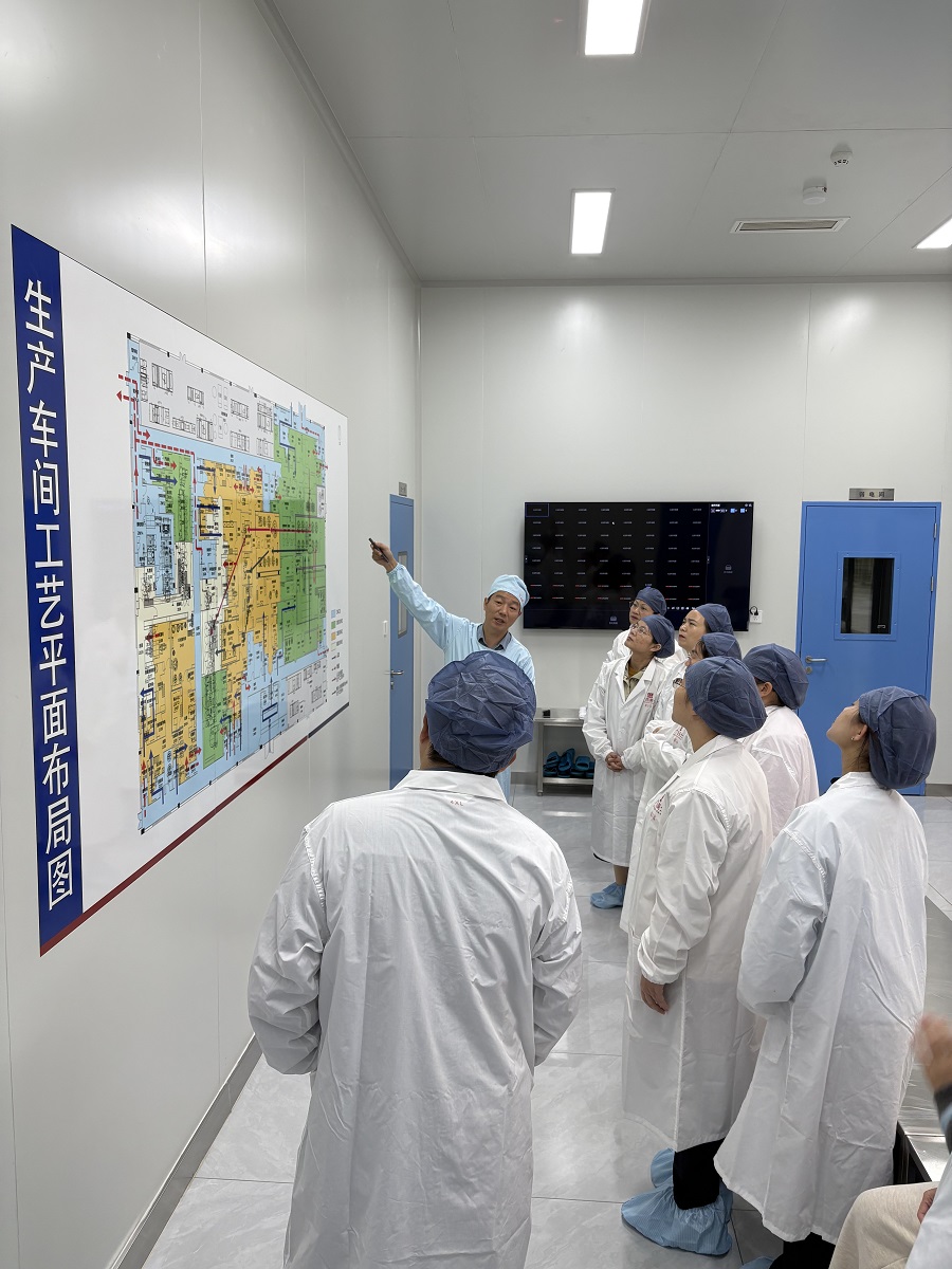 首先,支部党员实地考察了正处于预生产阶段的生产车间与核心实验室。通过近距离查看生产线布局、质量控制体系规划以及设施设备配置状况,对企业生产管理和技术路径有了更为直观和深刻的认识。